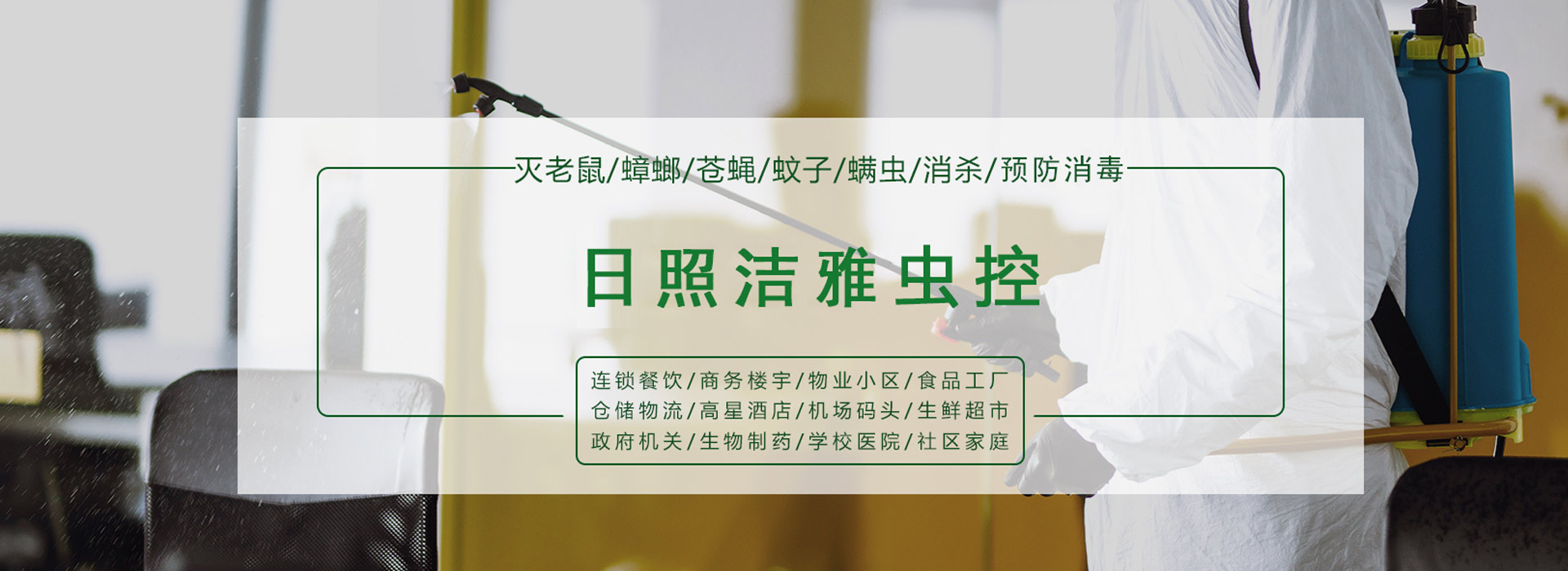 日照潔雅有害生物防治有限公司專業從事有害生物防治及滅殺、預防性消毒、冷鏈食品消毒等業務.為賓館、酒店、飯店、寫字樓、大中型餐廳、食品加工廠、醫院、小區、學校、商場、娛樂場所等各類場所提供有害生物綜合治理服務及預防服務。